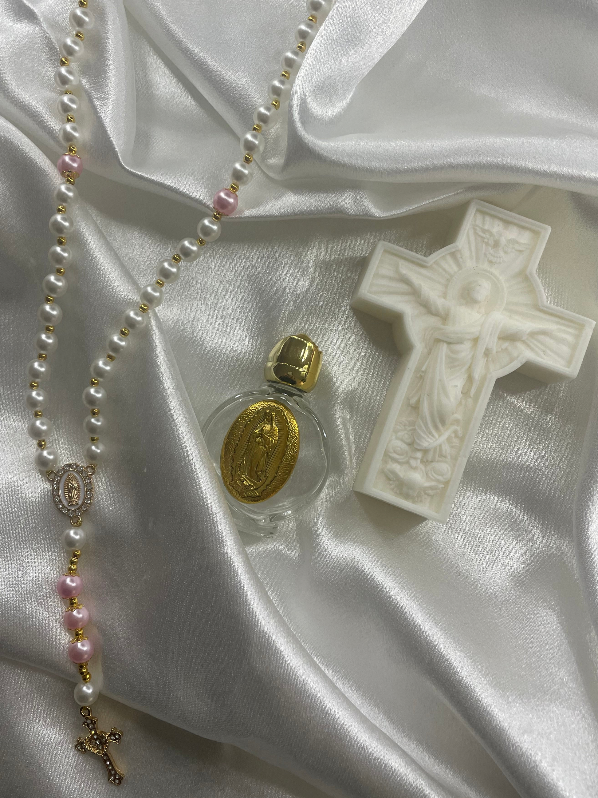 Chaque chapelet est soigneusement confectionné à la main, pour accompagner tes prières quotidiennes avec élégance et ferveur. - Bouteille pour eau bénite offerte — Une petite bouteille délicate, à remplir d’eau bénite pour protéger ton foyer et bénir ceux que tu aimes.