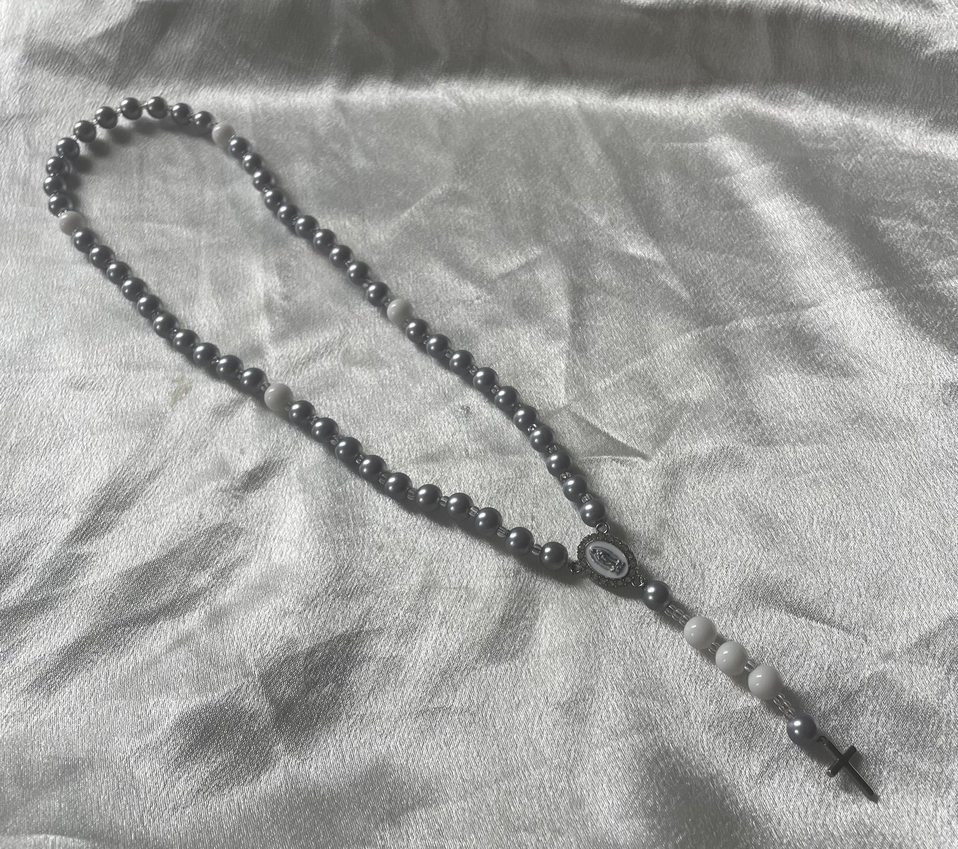 • Chapelet Fait main ( Gris chrome, Blanc )