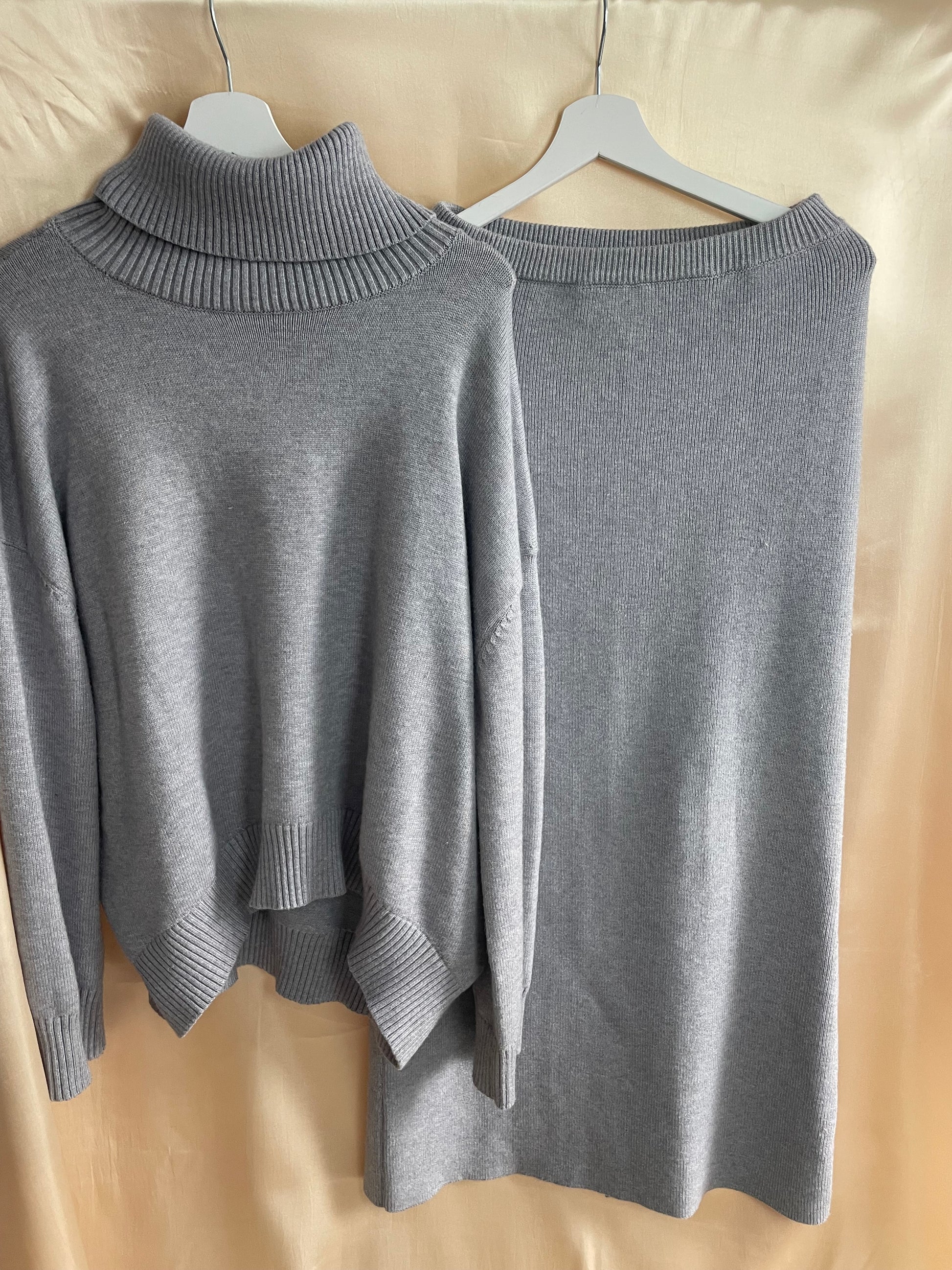 Ensemble avec pull col, roulé et jupe longue avec mini fente à l’arrière parfaite pour les minions et même l’hiver !! Très douce :)
